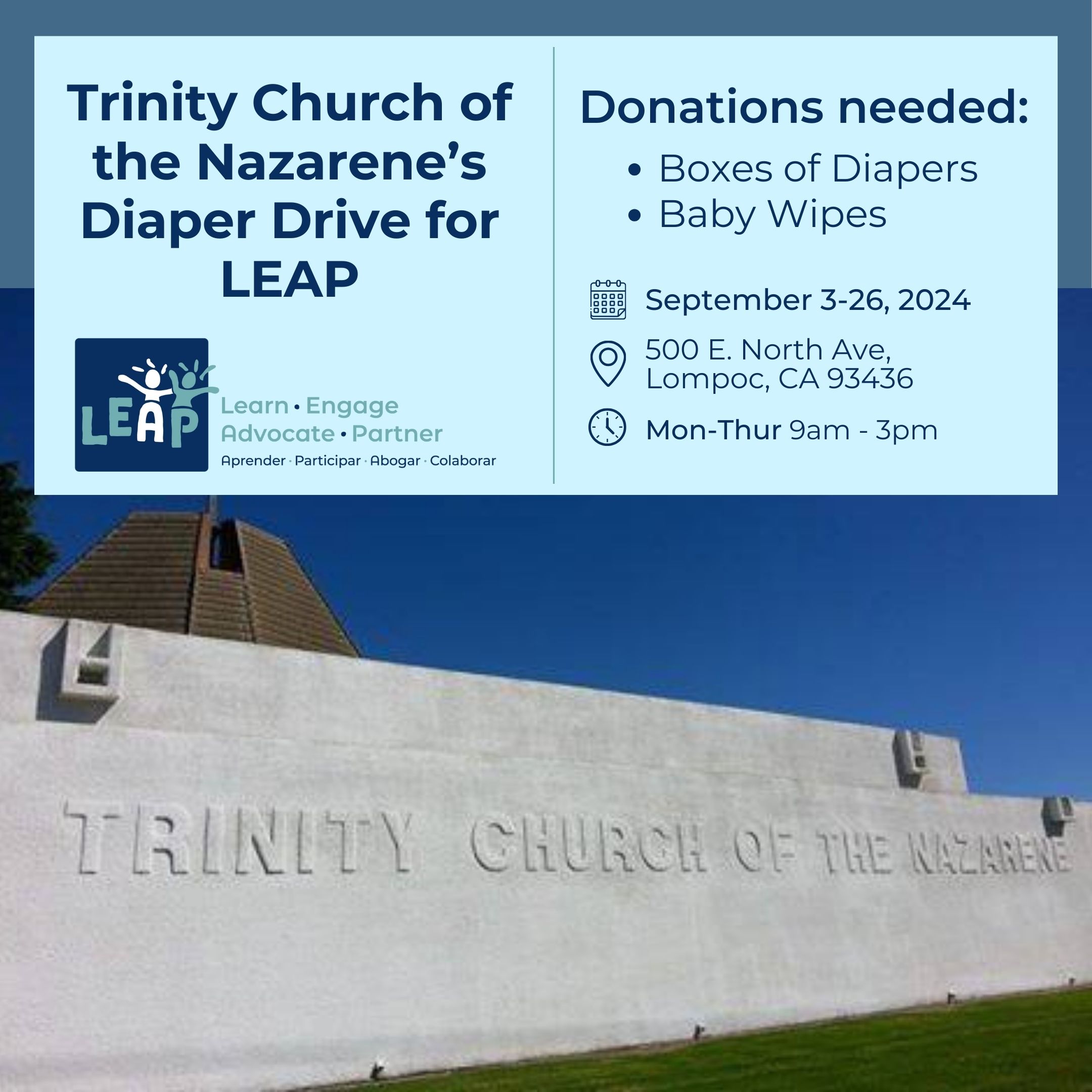 Trinity Church of the Nazarene’s Diaper Drive for LEAP September 3-26, 2024