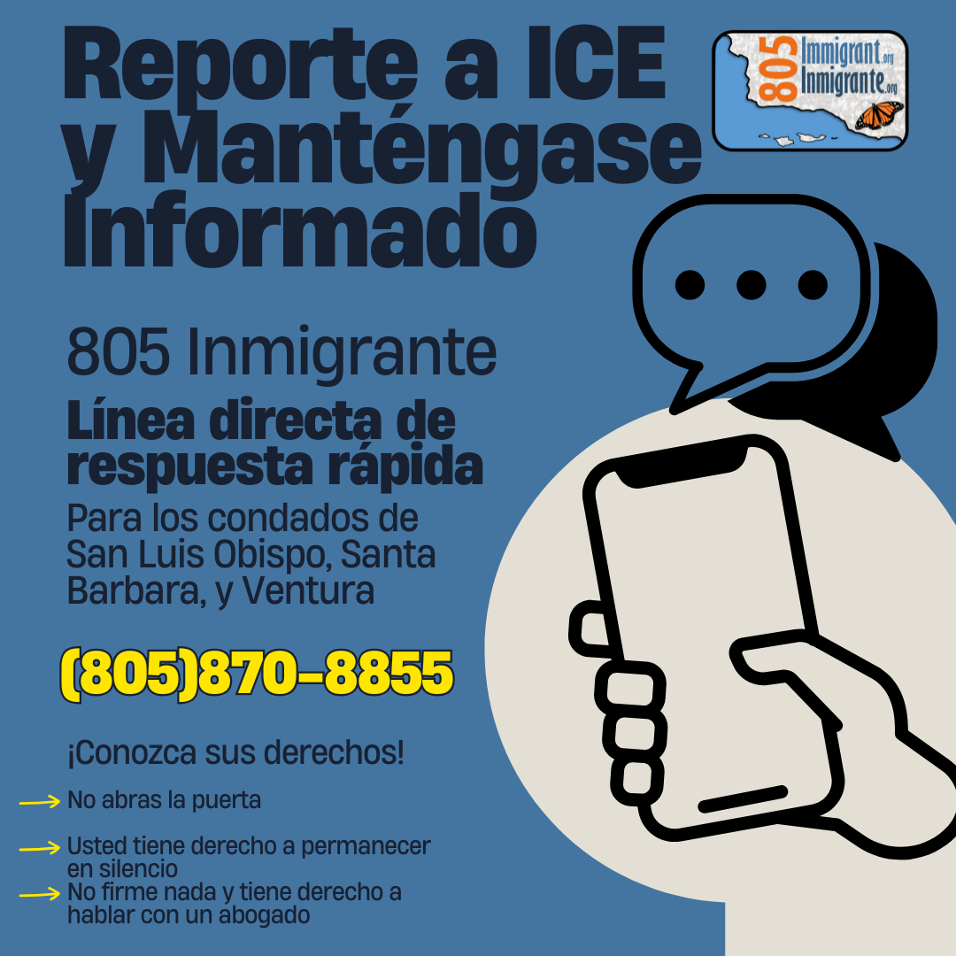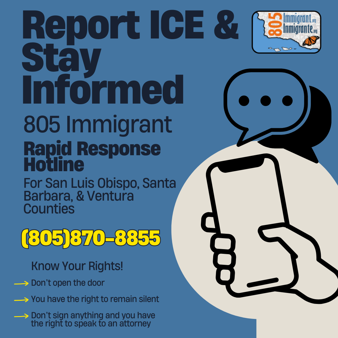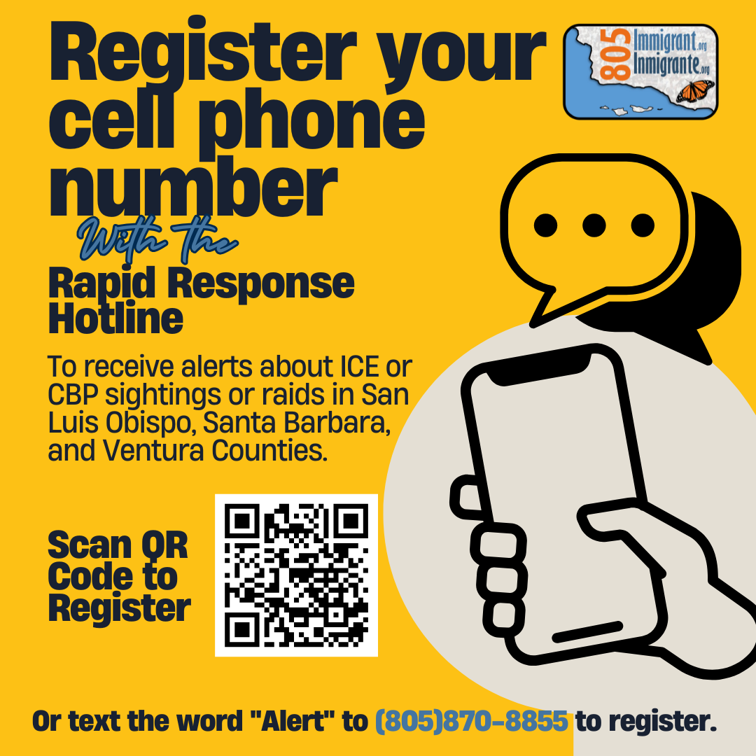 - Register your cell phone number to receive alerts about ICE or CBP sightings or raids in San Luis Obispo, Santa Barbara, and Ventura Counties.